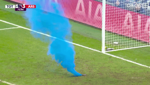 又封烟了!阿森纳暂客场应战 3-1领跑 热刺,运动活动 场 危险区域 内出现蓝色烟雾弹