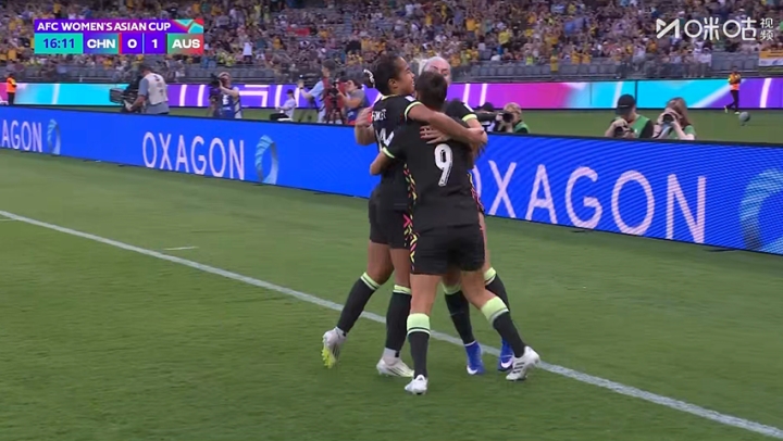 第17分钟,福勒倒三角助功 ,富德包抄破门,中国女足0-1追赶 澳大利亚。