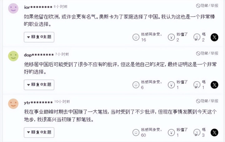 我觉得,虽然奥斯卡确实在中国赚了很多钱,但就像一位日本球迷在评论中说的那样:许多大牌球员来亚洲只是为了赚钱,出工不出力,但奥斯卡却始终认真对待赛事 到最后一刻,他的表现配得上他的薪水,而且亚冠赛事 与海港的交手中,奥斯卡也让远藤航等日本球员得到了运动练习 和成长。很显然,奥斯卡已经把职业生涯最好的时光留在了中国,他配得上我们的认可和掌声了。(老邱)